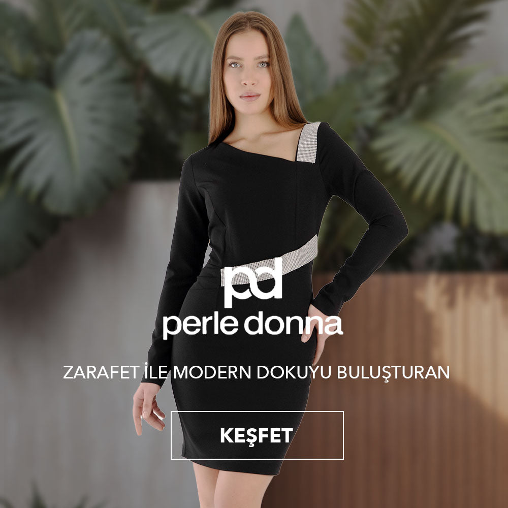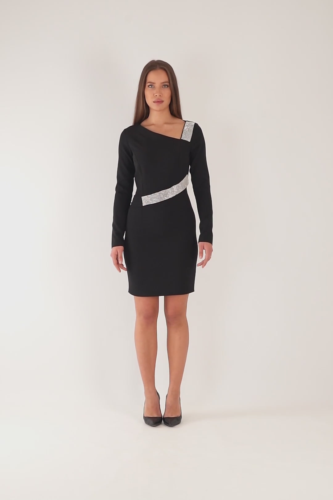 Taş Detaylı Asimetrik Siyah Elbise - Perle Donna